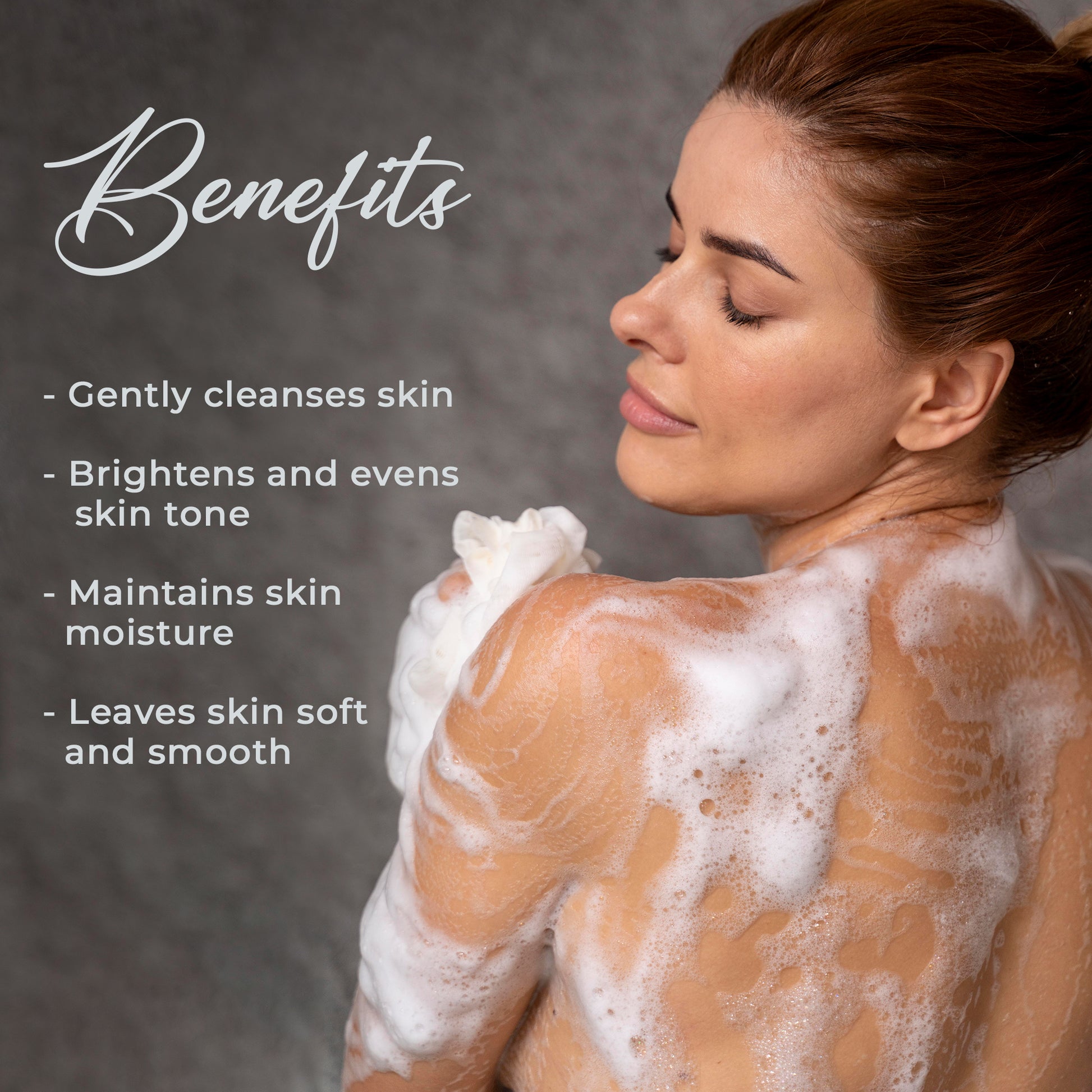 2. Take an adequate amount of the Rice Water Body Wash onto your palms, sponge, or loofah.