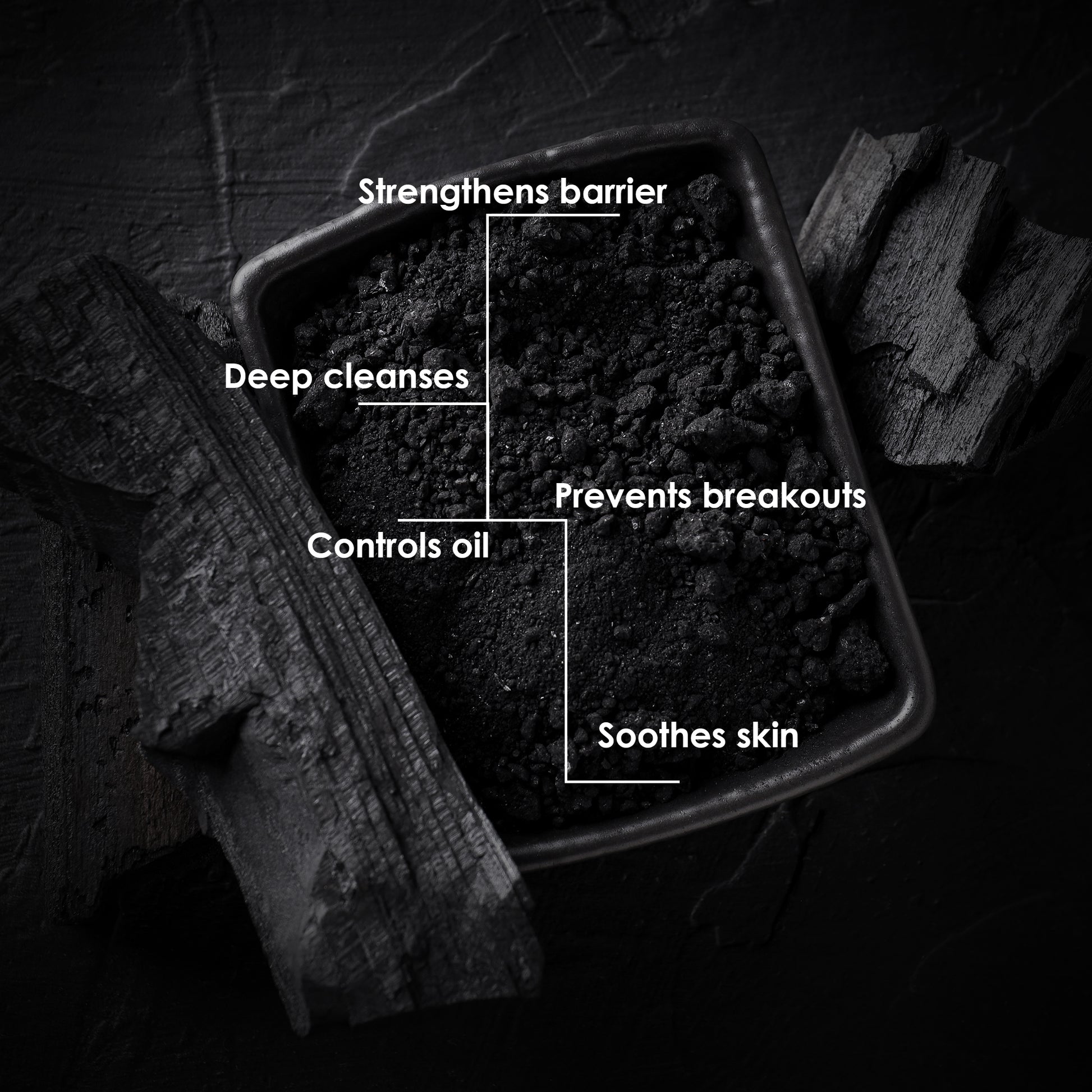 Activated Charcoal - Detoxifies the skin by absorbing impurities, excess oil, and pollutants.