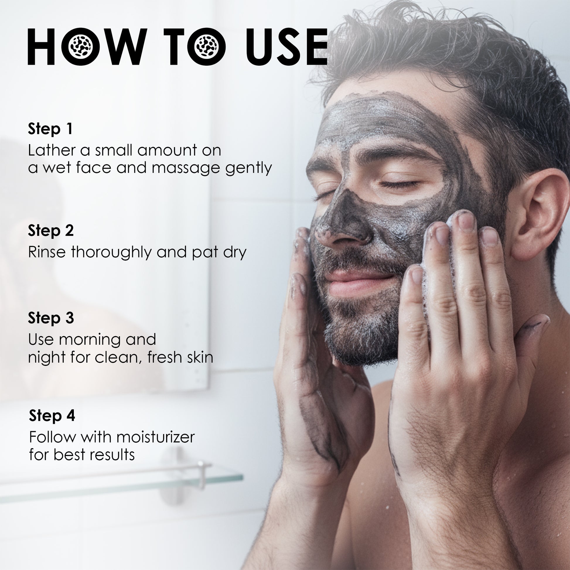 The Charcoal Cleanser for Men is designed to deep clean pores, remove excess oil, and wash away impurities that build up through the day.